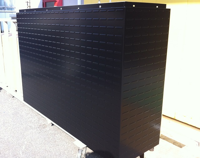 Here, we introduce 2mm black aluminium exterior panels, decorated with rough-tone, P series, KU-P513. This abbreviation stands for 12mm wide and 74mm long oval patterns.