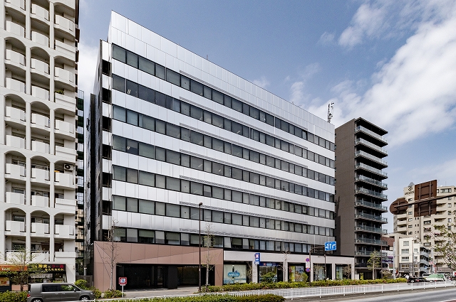 A Shinjuku office building with an updated look, thanks to the use of bright anodized panels on its exterior.