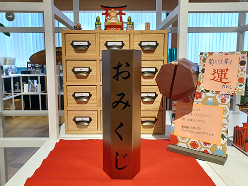当社ショールーム「STUDIO K+」では、今年の運勢を占う「メタルおみくじ」