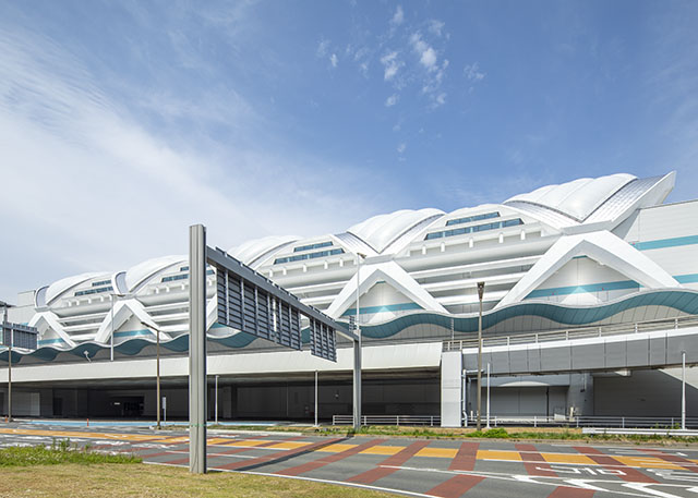 羽田空港第2ターミナル国際線施設:麻の葉文様をイメージしたアルミ外装パネルが目を引くデザイン